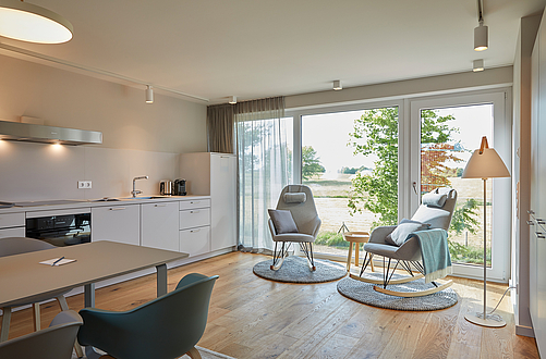 Bades Huk bietet die perfekte Balance aus natürlicher Umgebung und modernem Design. Die großzügigen Fensterfronten lassen das Tageslicht sanft durch die Räume fluten und schaffen ideale Bedingungen für authentische Aufnahmen. Klare Linien, warme Materialien und ein harmonisches Farbkonzept verleihen den Apartments eine zeitlose Ästhetik – perfekt für Interior-, Lifestyle- und Naturmotive, die Ruhe, Leichtigkeit und nordische Eleganz ausstrahlen.