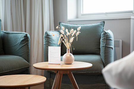 - Ruhebereich mit Blick in die Dünenlandschaft