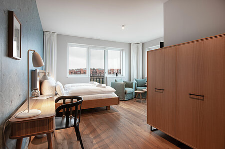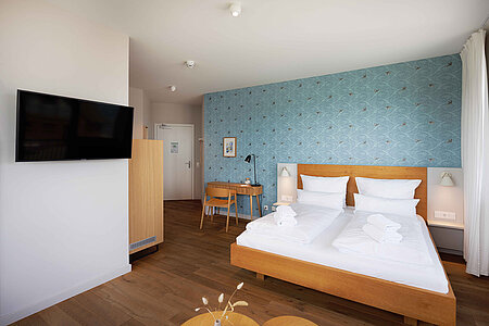 Genießen Sie in unseren 24m² großen Premium Doppelzimmern Ihre Auszeit an der Wismar Bucht. Alle Zimmer sind mit einem Flachbild SAT-TV, Haartrockner, Wasserkocher sowie Handtüchern ausgestattet und verfügen über kostenfreies W-Lan.