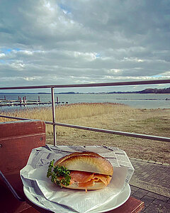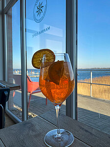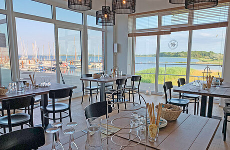 - Im Marina Café & Bistro im Erdgeschoss des Hotels serviert Ihnen das Marina Team gern ein reichhaltiges Frühstück mit schönstem Blick auf die Wismarbucht und die aufgehende Sonne im Hintergrund.