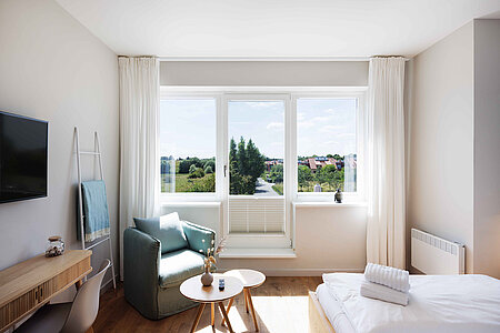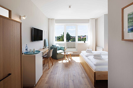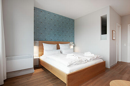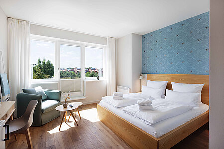 Im eleganten Wohlfühlambiente unserer 19m² großen Standard Doppelzimmer genießen Sie den Blick auf die Salzwiesen. Die Zimmer sind mit einem Flachbild SAT-TV, Haartrockner, Wasserkocher sowie Handtüchern ausgestattet und verfügen über kostenfreies W-Lan.