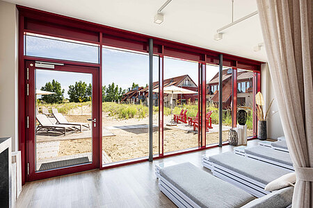 - Ruhebereich mit Blick in die Dünenlandschaft