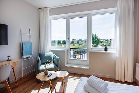 STANDARD DOPPELZIMMER MIT BLICK ÜBER DIE SALZWIESEN & ZUR LANDSEITE