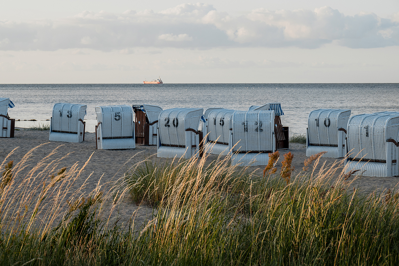 Genießen Sie absolutes Ostseestrand Feeling in unseren blau-weiß gestreiften Strandkörben. In unserem Marina Café erhalten Sie zu den Öffnungszeiten die Schlüssel.